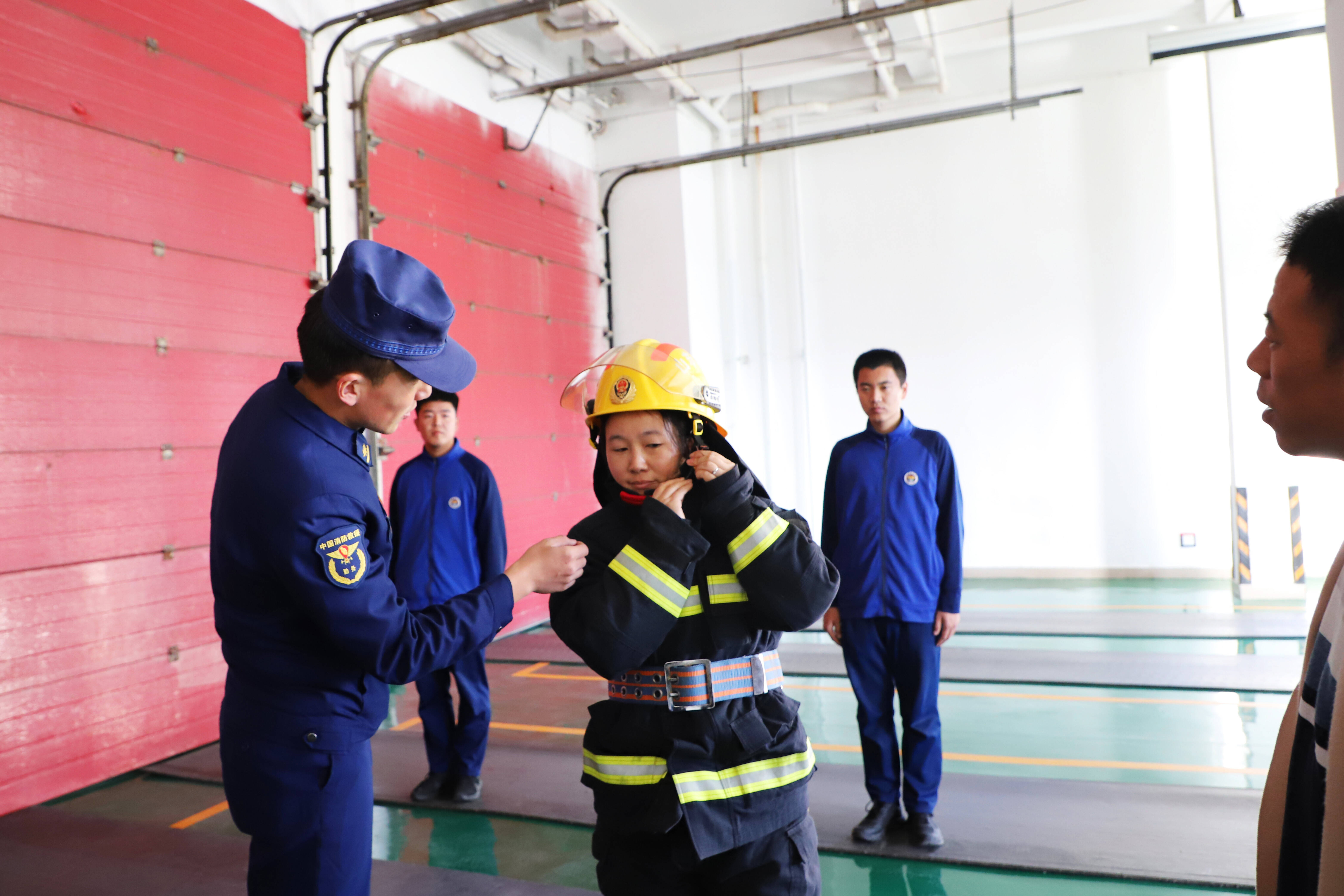 在个人防护配备体会环节,消防救援人员现场演示了救活防护服、头盔等个人防护配备的穿戴办法,随后两名员工在消防员的帮忙下试穿重达10余公斤的救活防护服,深入感受到消防救援人员在烈火逆行中的艰苦。