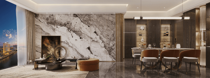 至于约139㎡的新品天幕江景焰火大平层,它诠释的是一种“全景沉溺式”的日子主权。不只占位新年焰火汇演的绝佳视角,其稀有的三阳台规划构成“超级巨幕厅”,将欣赏体会提高至碾压级。而270°江景环幕的主卧套房内,星空大浴缸临窗而设,让私密韶光与雄壮江山星空对话。